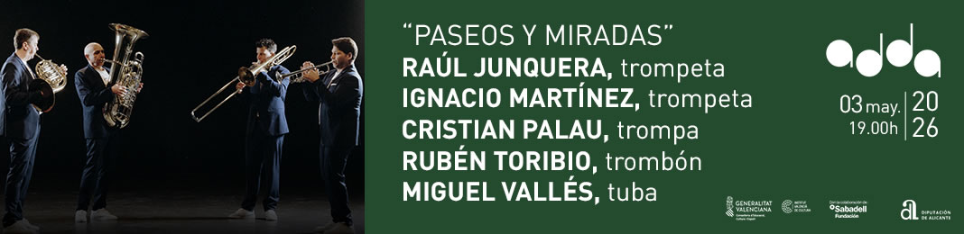 Art of Brass Valencia ofrecerá en el ADDA el concierto Paseos y Miradas, compuesto por cinco piezas evocadoras que invitan a descubrir, en un plácido paseo, la riqueza de las músicas del mundo.