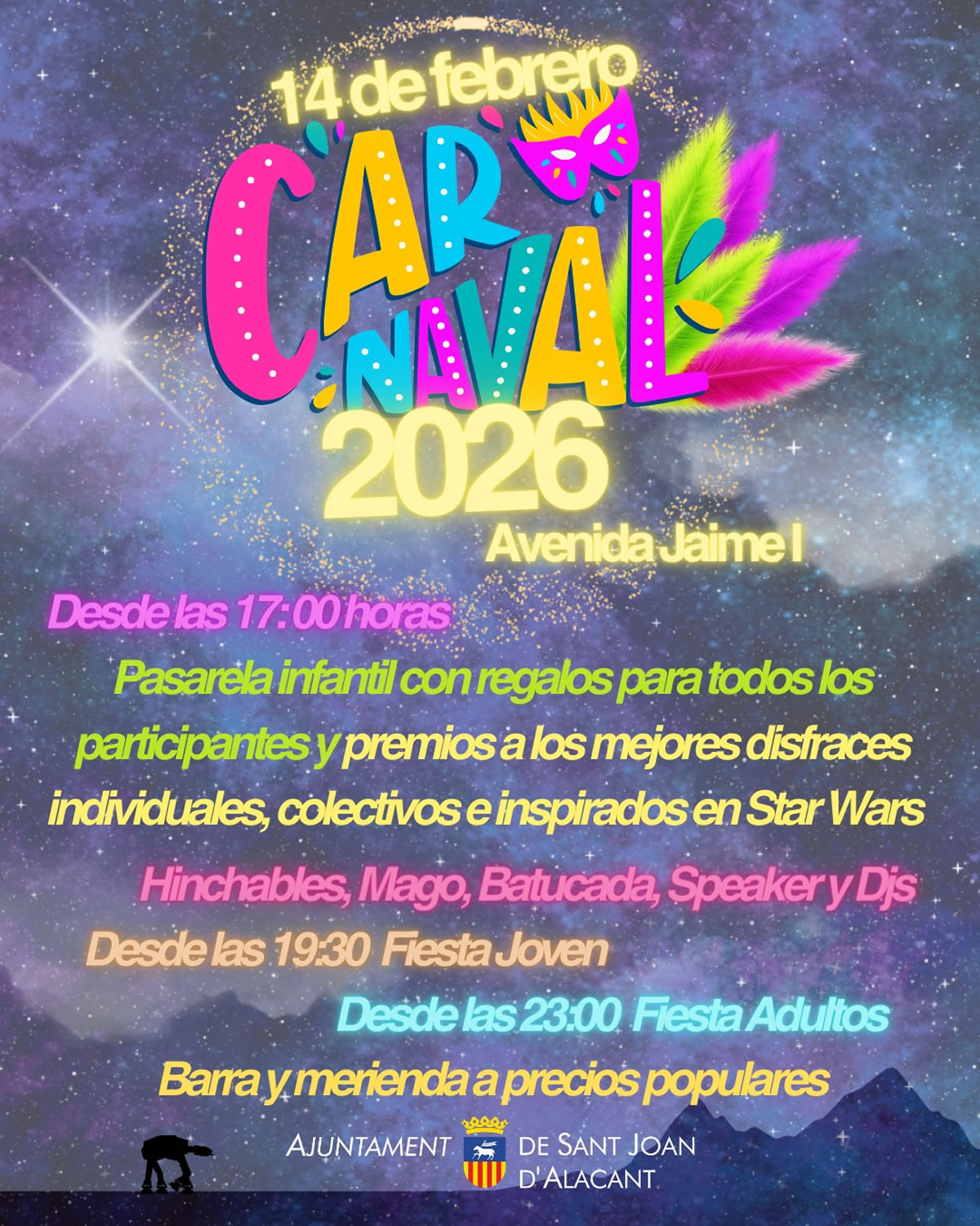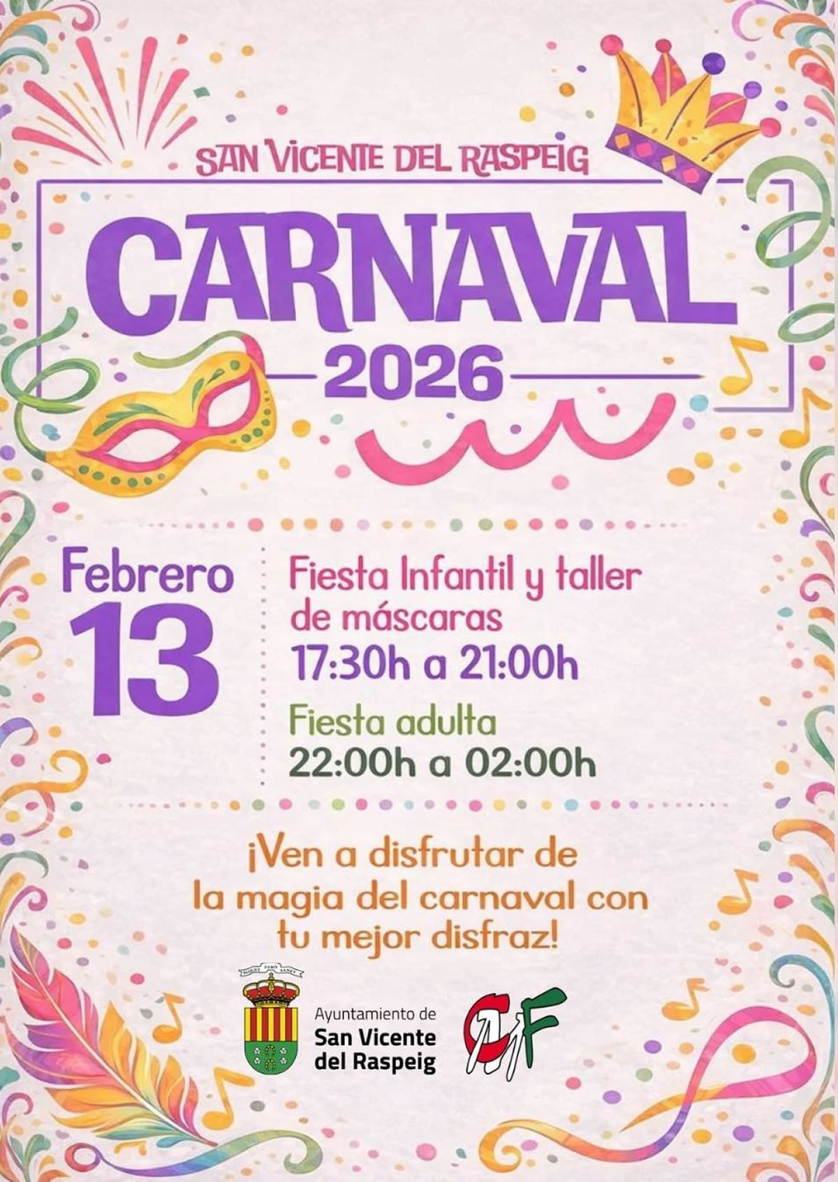El Carnaval de San Vicente del Raspeig 2026 se celebrará el viernes 13 de febrero, con una programación para peques y adultos: