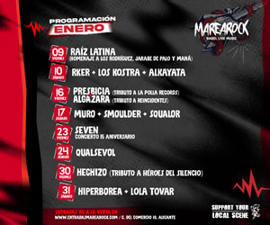 Con ocho noches de alto voltaje: así regresa este enero la Sala Marearock. Empieza el año con toda la energía que promete la sala de conciertos alicantina desde el primer mes de 2026.